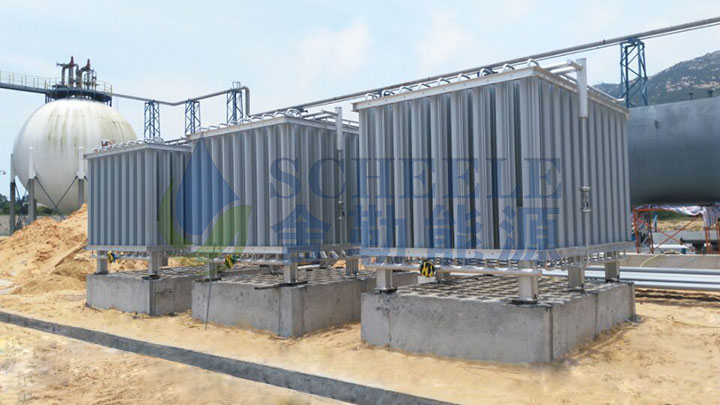 5、空溫式汽化器的環(huán)境溫度為-20LNG汽化器—+50LNG汽化器,南方一般用200mLNG汽化器/h,北方用400mLNG汽化器/h。